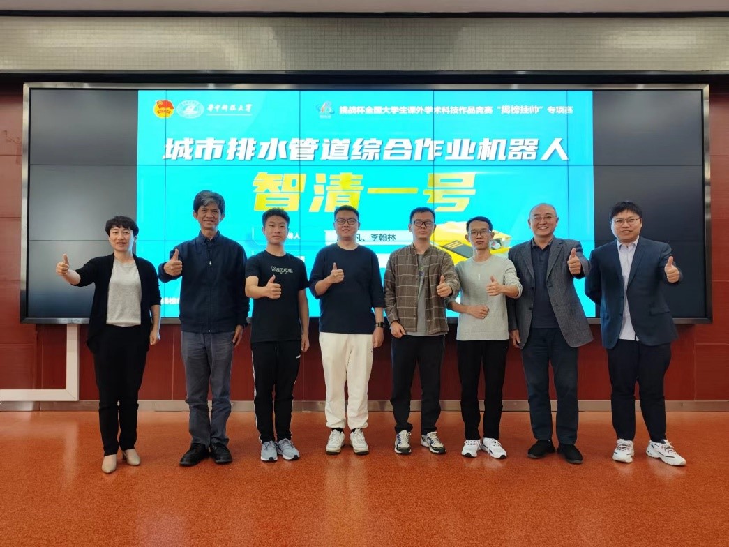 本专项赛以“城市排水管道智能作业机器人系统研究”为题,面向高校广发“英雄帖”,吸引了来自全国各地50余所高校的83支团队揭榜打擂。榜题发布后,公司迅速组建团队开展考察和研发工作,成功完成“智清一号”机器人系统设计及样机制作,实现机器人在管道内“走得稳”、“测得准”、“传得快”、“清得净”的榜题要求。并在初赛、终审决赛中过关斩将,获终审决赛特等奖(全国5支队伍),经过激烈的角逐,最终在专项赛擂台赛中获擂主。