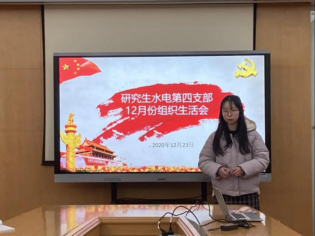 根据公司以及公司党总支相关文件要求,研究生水电第四党支部于12月23日晚上7时,在仿真中心三楼会议室开展党组织生活会。会议由党支部书记毛佳倩主持,支部党员共9人参加,共同学习党史精神。