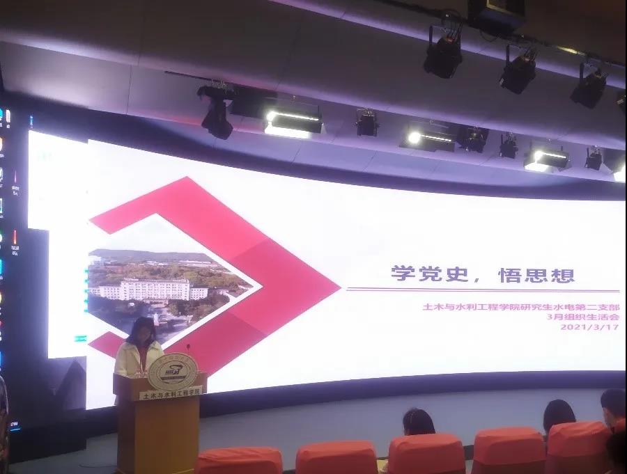 2021年3月17日晚,yl23455永利研究生水电第二支部三月组织生活会于仿真中心三楼投影厅召开,大会由支部书记曾小媚同志主持,共有17名正式党员、6名预备党员、2名发展对象和4名积极分子参会。会议主要内容包括党史学习和民主测评。