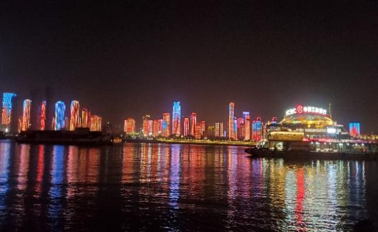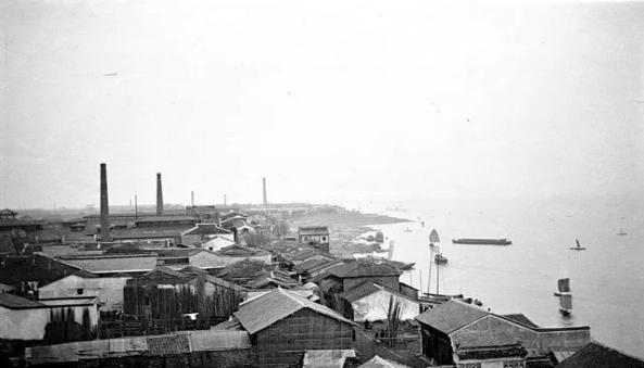 第一张照片拍摄于武汉江滩夜晚,绚丽的红色灯光倒映在江水之中,游轮缓缓驶过,自成一副美丽的画面。第二张照片是1913-1915从蛇山看长江,一览无遗,房屋、长江、船只,与第一张图片产生鲜明的对比。两张照片跨度刚好也是党走过的百年历程,展现了党带领国家从站起来、富起来到强起来的伟大历史飞跃。