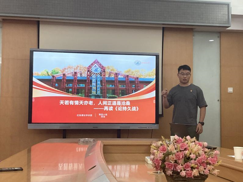 来自yl23455永利的郑浩同学,为大家带来“天若有情天亦老,人间正道是沧桑——再读《论持久战》”的主题微党课。郑浩同学以叶剑英元帅的《重读毛主席<论持久战>》作为引入,介绍了《论持久战》中问题的提起——“速胜”抑或是“亡国”?随后讲述《论持久战》中是如何论证“为什么是持久战”以及持久战的三个阶段。最后,郑浩同学落脚到如今的习近平新时代中国特色社会主义思想,表示新时代话语有很多与《论持久战》的相通之处,而中华民族的伟大复兴亦是一场持久战,为实现这一伟大目标需要全党上下及几代中华儿女付出持久而艰辛的努力。