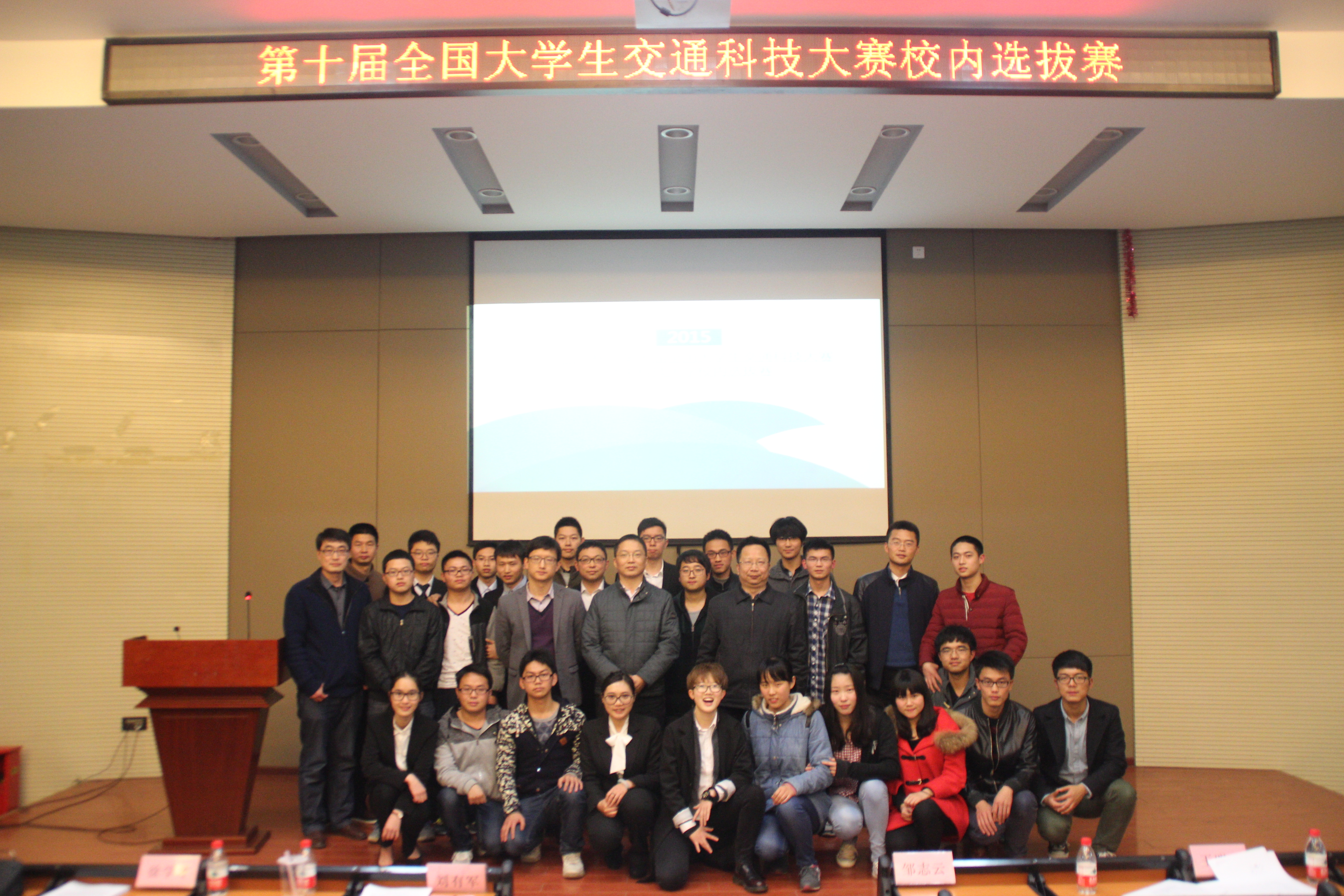 (通讯员:陈晓光 景丹)2015年4月8日,第十届“ 晶众杯”交通科技大赛永利官网校内选拔赛决赛在南二报告厅顺利举办。土木工程与力学公司交通运输工程系系主任邹志云教授、刘有军副教授、张席洲副教授、肖代全老师、徐学才老师、王进老师出席了本次比赛并作为评委老师。