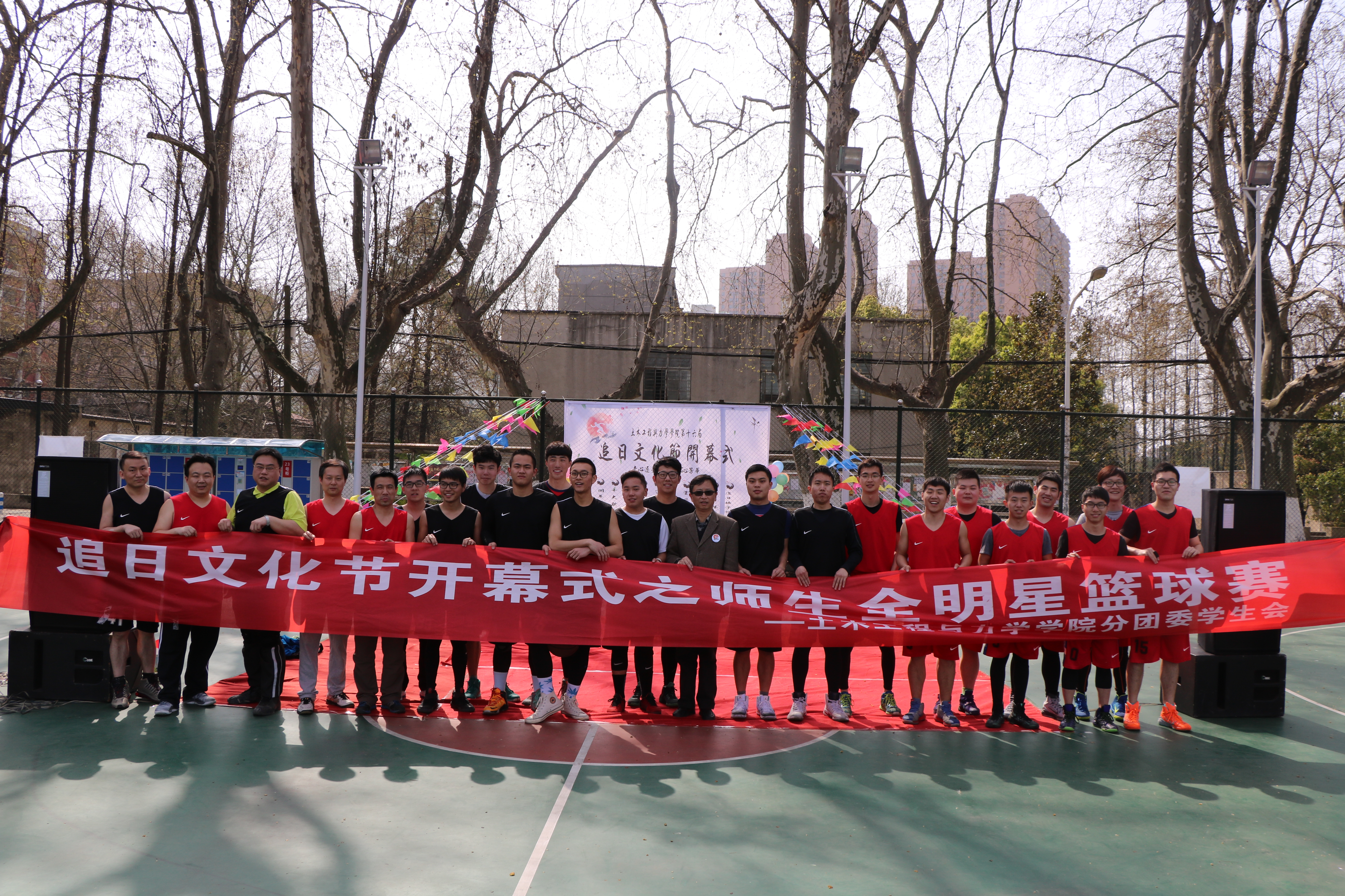 师生篮球全明星赛将活动带向高潮。快攻、突破、干拔、三分远投,球场上没有身份的隔阂,只有球艺的切磋。中场休息时,举行了逗趣横生的三分大赛。解说员全场幽默风趣的解说也是一大亮点,全场气氛频频点爆。随着终场哨声的响起,全明星赛与文化节开幕式在夕阳中落下帷幕。