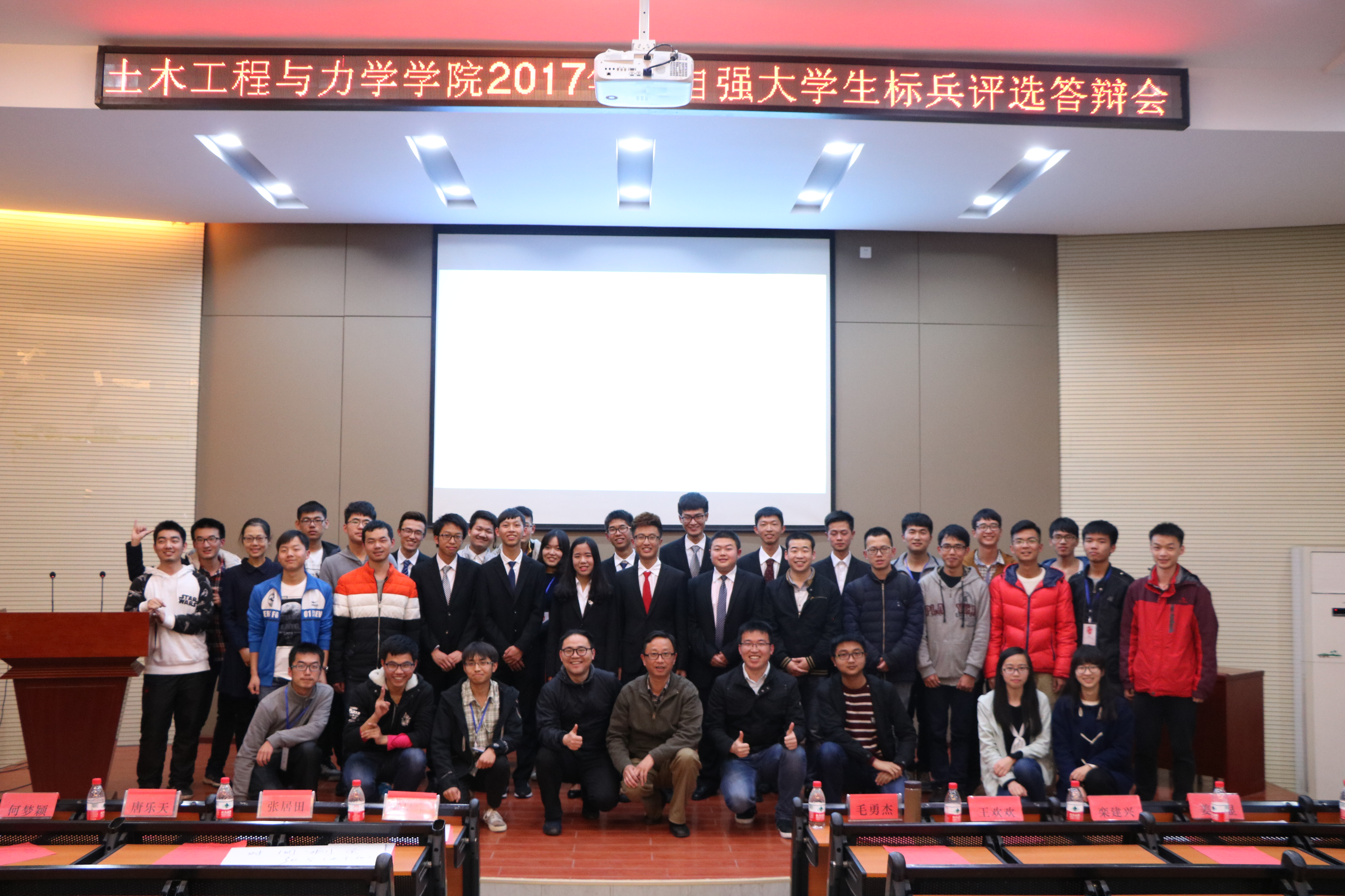 3月30日晚19点整,土木工程与力学公司2017年度自强老员工标兵评选答辩会在南二楼报告厅举行。公司党委副书记毛勇杰,全体本科生辅导员以及校资助中心代表和部分友好院系代表作为评委参与了本次活动,此外还有120多名本科生代表作为大众评审参与了现场投票环节。