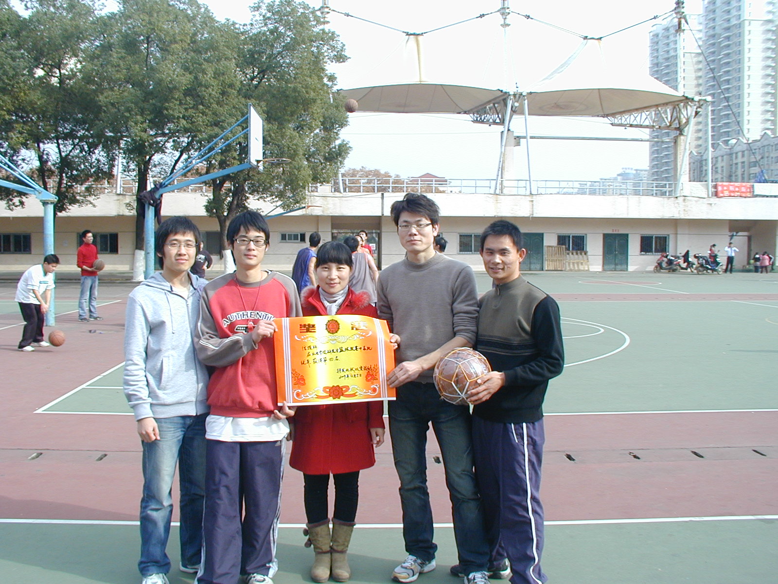 决赛结束后,研究生辅导员粟晓莉老师为获胜球队颁发了奖品,以示鼓励,并与队员们留影纪念。