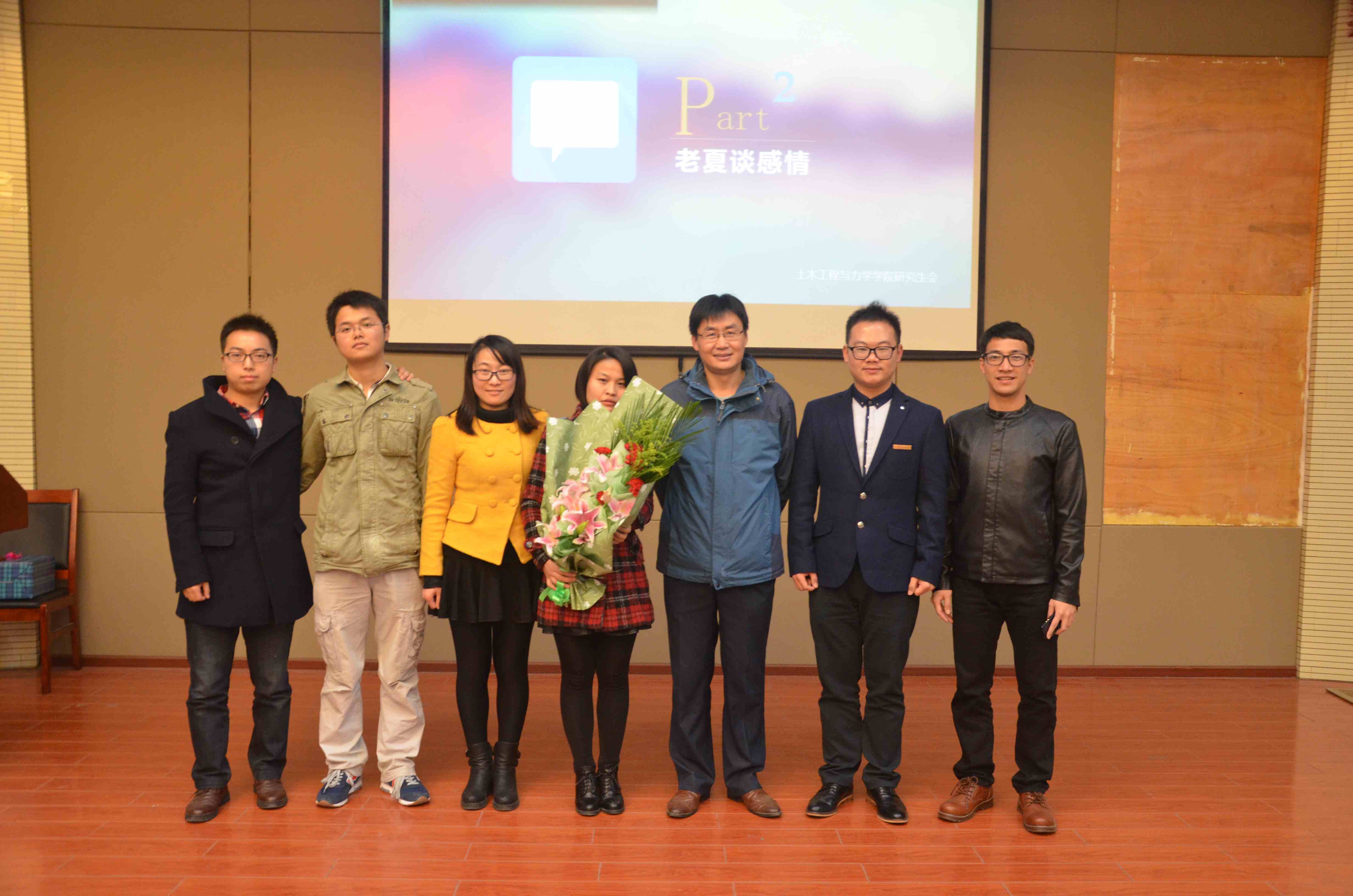 2014年11月17日晚19:00, 土木工程与力学公司“ 美丽心灵 与爱同行之听老夏谈感情”心理健康讲座在南二楼报告厅准时举行,活动特邀请人气颇高的夏增民老师主讲。出席本次讲座的嘉宾有毛勇杰老师、马志凤老师王明飞老师、校研会心理部景亚斐同学以及兄弟院系研会主席等。