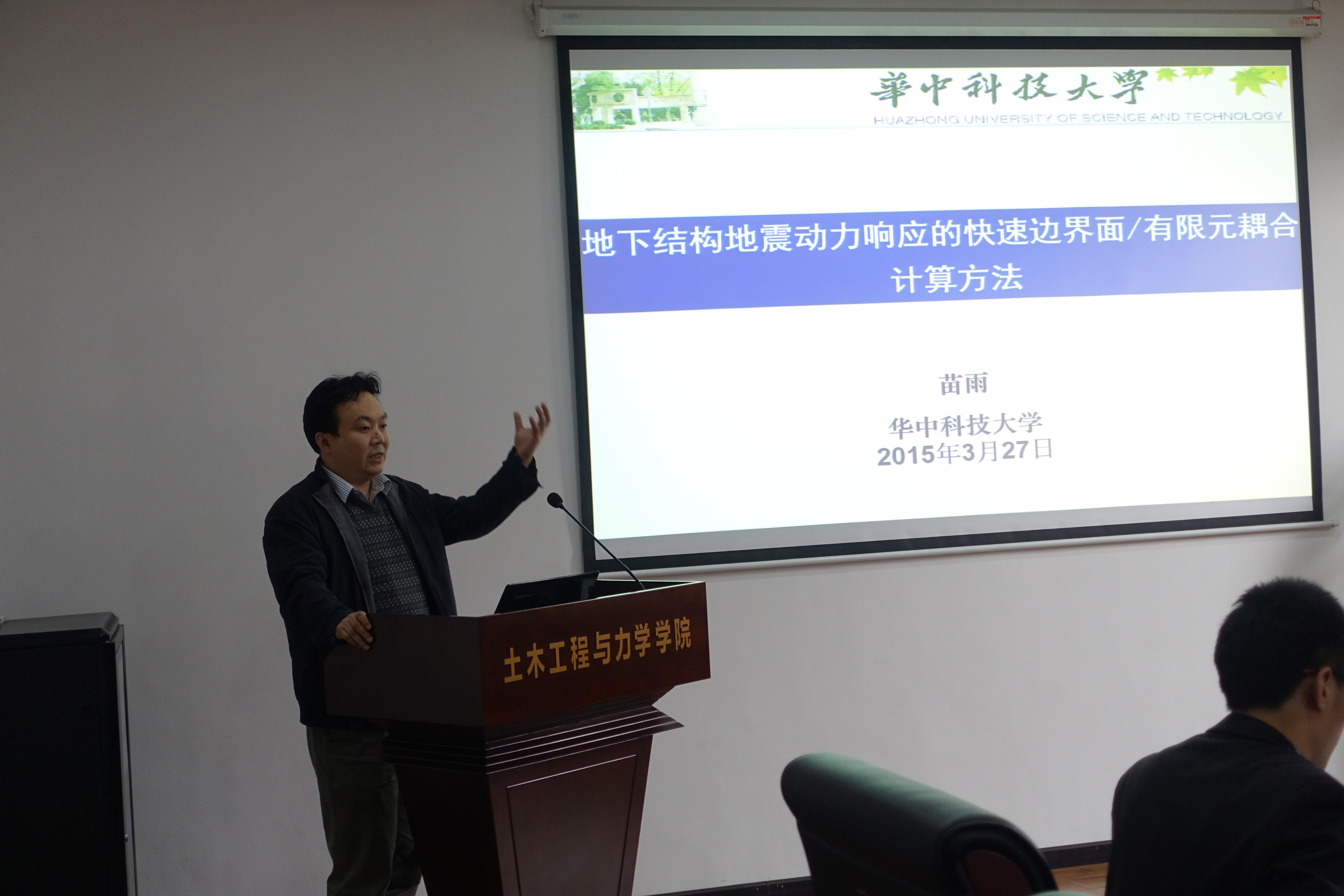 刘华北老师首先介绍了土力学与岩土工程发展中建立的主要理论以及实验方法,谈到土力学是一门重视实验的科学,强调土力学中实验与经验的重要性。接着介绍了土力学与岩土工程的最新学术前沿。刘老师在结尾谈到对创新的理解,强调创新需要重视基础,需要精力投入,需要以大量文献阅读为基础,需要结合国家建设需要。苗雨老师主要介绍了快速边界面/有限元耦合计算方法,谈到边界面方法的优势与劣势,并就自己做出的部分学术成果展开介绍。苗老师谈到下一步的研究计划,希望近期将边界面/有限元耦合算法应用到超长现状结构中,提出建立时域的边界面/有限元耦合计算方法以便应用到实际的地铁、地下结构中的远期设想。章荣军老师以“ 吹填法围海垦地工程中的挑战与机遇”为题,以新加坡、连云港、天津等地的工程实例为背景,介绍传统吹填法工期长、机械化水平低、石材耗费量大等缺点,介绍SDF法的优越性。博士生姚二雷、赖汉江、曹文昭依次就自身的科研经历和大家进行了心得分享。