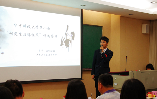 最后全校一共有十名研究生获得永利官网“ 第八届研究生品德模范”称号。其中公司有两名同学获得“ 第八届研究生品德模范”称号,他们分别是:一边读书一边照顾母亲,十几年如一日贴心陪伴母亲的葛伟;上学以来从没跟父母要过一分钱,并靠自己还清大学贷款,补贴家用的常怀宽。同时自幼左眼外斜视,影响集中力和学习效率,却通过不懈的努力始终保持优秀的祝经明同学也获得了“ 第八届研究生品德模范提名奖”。他们都是公司学子的榜样,是同学们身边的正能量,值得多向他们学习。