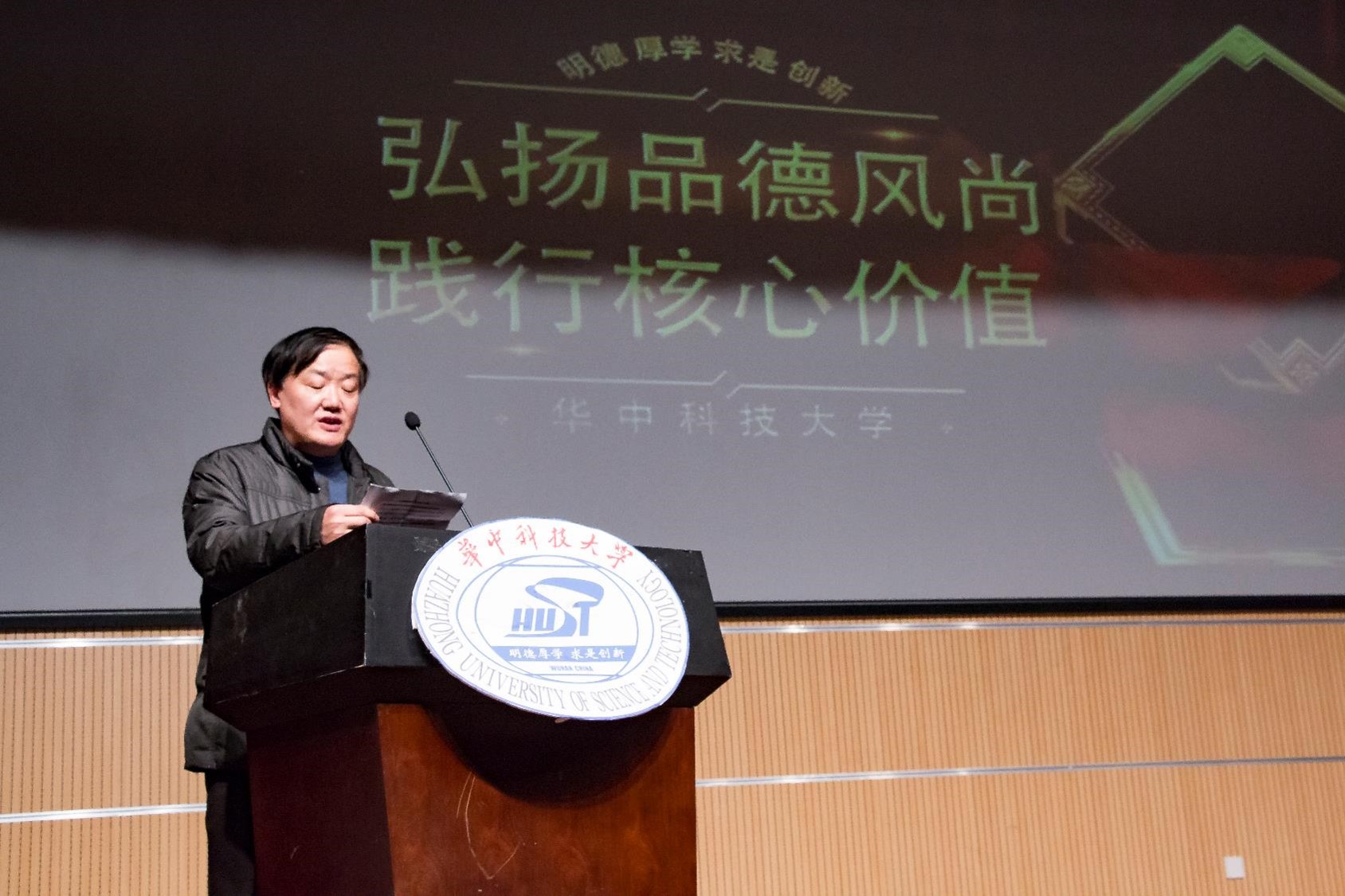 永利官网第八届研究生品德模范颁奖典礼于12月18日晚在机械公司报告厅隆重举行,本次典礼的主题是“ 弘扬品德风尚,践行核心价值”。永利官网研究生院经理解孝林、公司党委研究生工作部副部长戴则健以及十多个院系的相关领导作为颁奖嘉宾出席了本次颁奖典礼。研究生院经理解孝林老师在颁奖典礼上致辞,他勉励同学们在工作和学习中树立求真务实的作风,在生活中保持艰苦朴素的态度,并号召广大同学向品德模范学习。公司葛伟和常怀宽同学最终获得“ 品德模范”荣誉称号,由公司副经理李振环老师为他们颁奖。