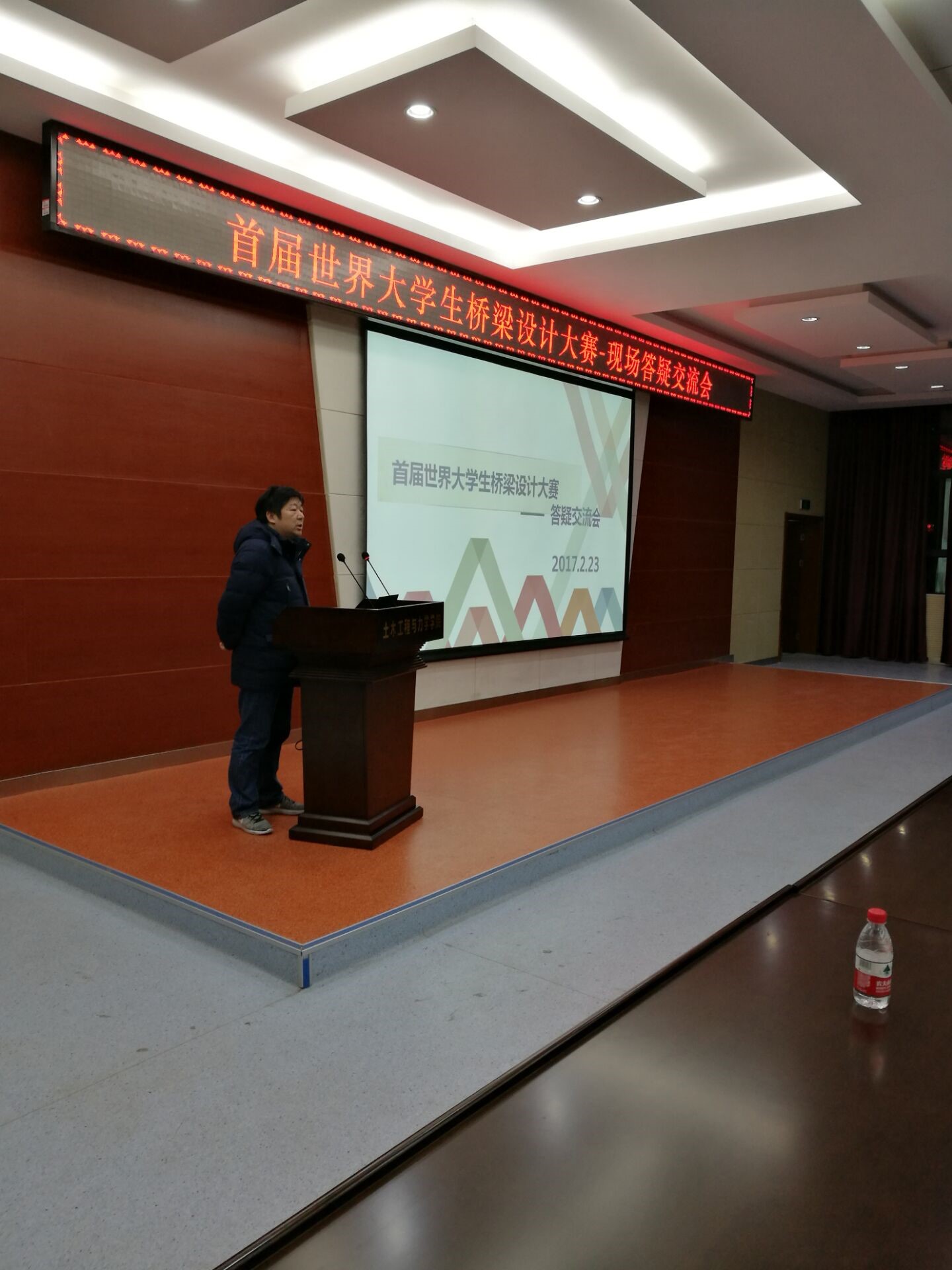 2月23日晚上7点首届世界老员工桥梁设计大赛中期答疑交流会在西六报告厅顺利召开,中国市政工程西北设计研究院高级工程师朱安静、土木工程与力学公司全体桥梁教研室的教师们、具有丰富比赛指导经验的苏原老师、研究生辅导员马志凤老师以及参赛的同学们共同参加了此次会议,会议由陈志军老师主持。
