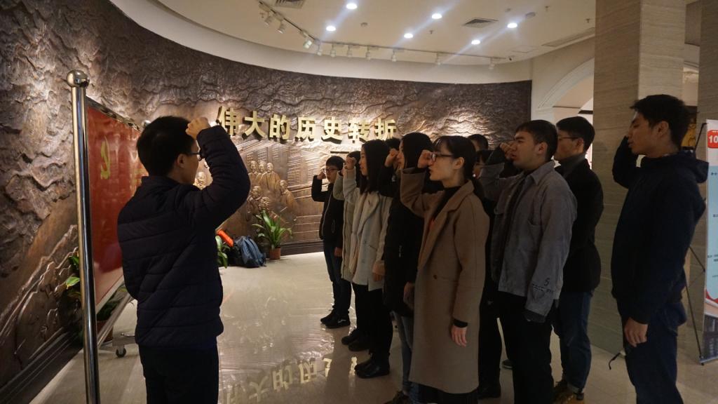 早上10点,支部全体同志抵达位于汉口鄱阳街的八七会议会址纪念馆,面对大厅陈列的党旗,庄严地重温入党誓词。