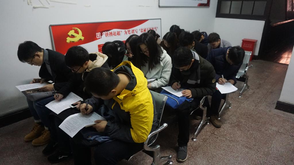 培训完成后,全体成员参加了新党章的测试。测试题一共包含5个单选题、5个多选题、5个填空题和1个附加题,测试时间为20分钟,大部分内容都是十九大通过的新党章中修改的部分。测试完成后全体成员共同学习探讨题目内容,加深对新党章的学习和领会,支部旨在以测试的方式激励同志们认真学习党的理论知识。