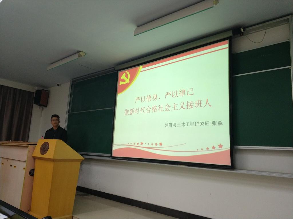 接下来是党员代表演讲。来自三个班级团支部团支部的6名党员代表分享了自己对十九大报告的理解感悟。张淼同志倡导同学们将学习专业知识和政治理论知识结合起来,做新时代的合格建设者和可靠接班人;张攀同志结合近五年来党的作风建设取得了成效,阐述了他对新时代党的作风建设的理解和展望;易幸存同志鼓励同学们立足本专业,在建设“一带一路”的国家战略中贡献青春力量。