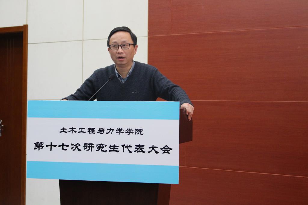 2017年12月15日,土木工程与力学公司第十七次研究生代表大会在西六楼五楼学术报告厅隆重举行。出席本次大会的嘉宾有:公司党委研究生工作部思想政治办公室主任张发雄、土木工程与力学公司党委副书记毛勇杰、土木公司研工组组长马志凤、校研究生会副主席徐明宇。
