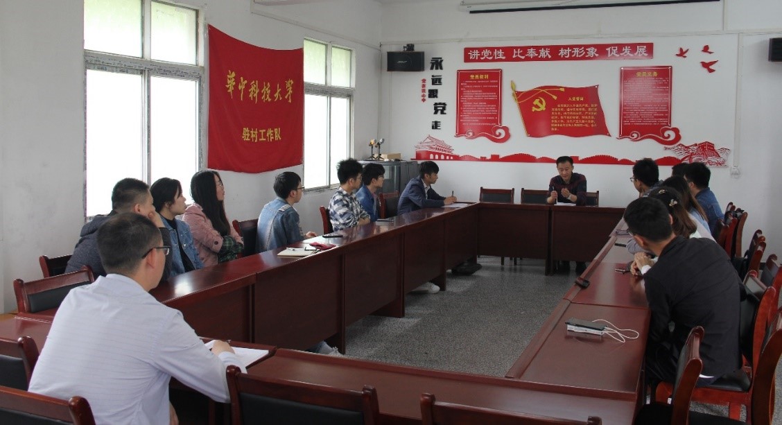 上午10时,党支部全员来到了巴石村党员群众服务中心了解村内的精准扶贫项目。据驻村工作队介绍,巴石村2014年被列为重点贫困村,2015年永利官网驻村工作队成立,开展村内精准扶贫工作。面临语言沟通障碍等各种复杂情况,驻村工作队牢记使命,整合政府、高校和村内多方资源,成立了3个产业基地。为吸引年轻人回村发展,村里完善了基础设施并普及基本的医疗卫生常识。最终,在驻村工作队和全村人的共同努力下,巴石村于2018年初成功实现了脱贫出列的目标。2019年,在巩固脱贫工作的基础上,孝昌县全力推动脱贫攻坚任务,力争今年达成“县摘帽”。介绍完巴石村的基本情况和驻村工作队的工作进展后,大家一起探讨了长效的扶贫机制和工科选调生深入基层等问题。