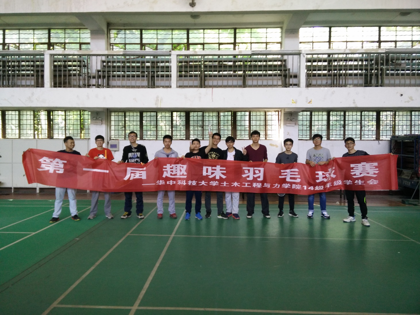 2016年4月10日,由永利官网土木工程与力学公司14级年级员工会主办的第一届趣味羽毛球赛在西体举行。经过两天激战,土木1407班获得冠军,土木1405班获亚军,土卓1401班获季军,土木1406班获优胜奖。