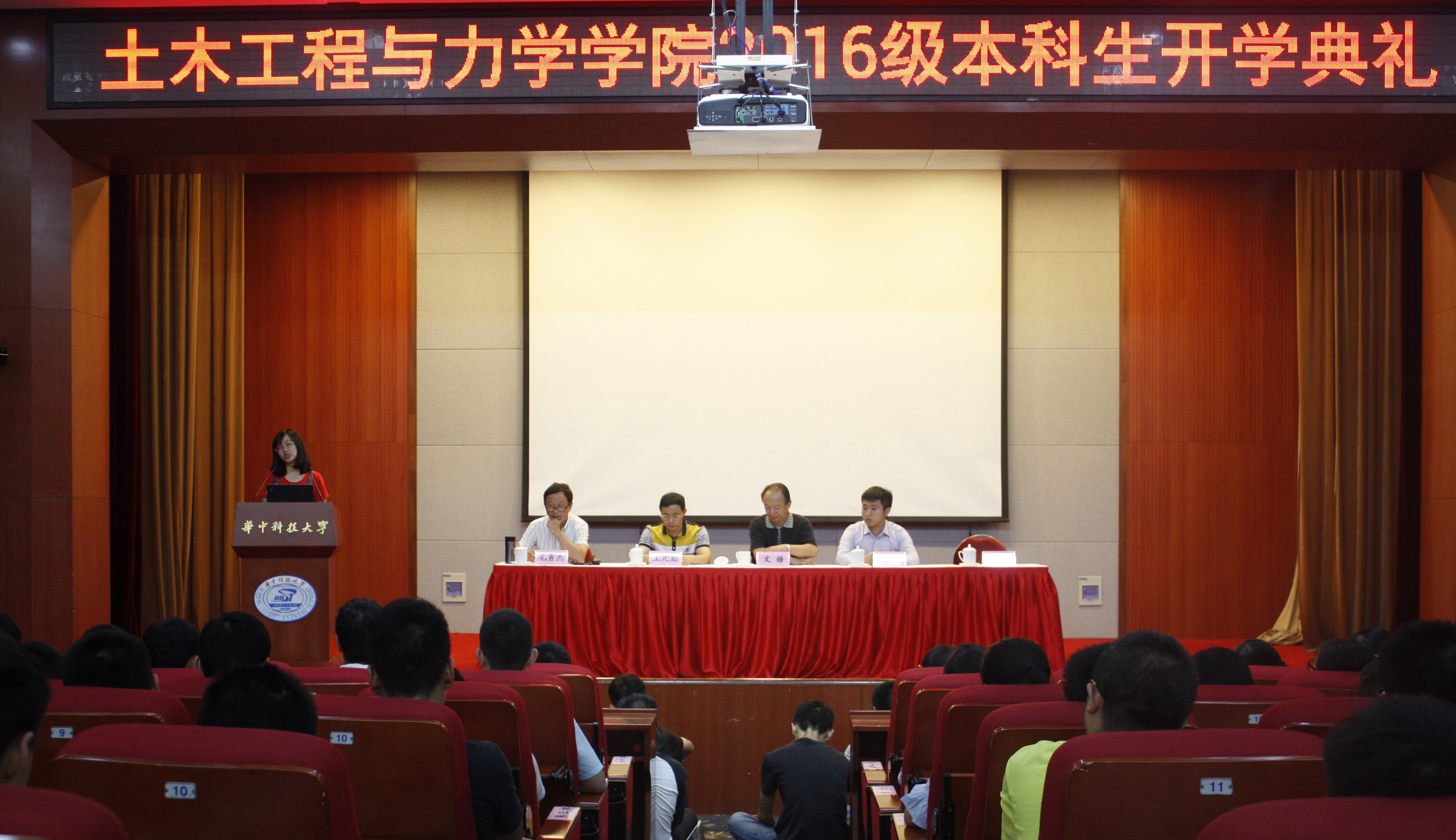 (通讯员:黄小松)2016年8月29日上午10:00,土木工程与力学公司2016级本科生开学典礼于一号楼报告厅举行,公司党委书记文锋,公司党委副书记毛勇杰,力学系副主任王元勋,16级辅导员栾建兴出席会议。会议由毛勇杰书记主持,大会在庄严的国歌声中开始。