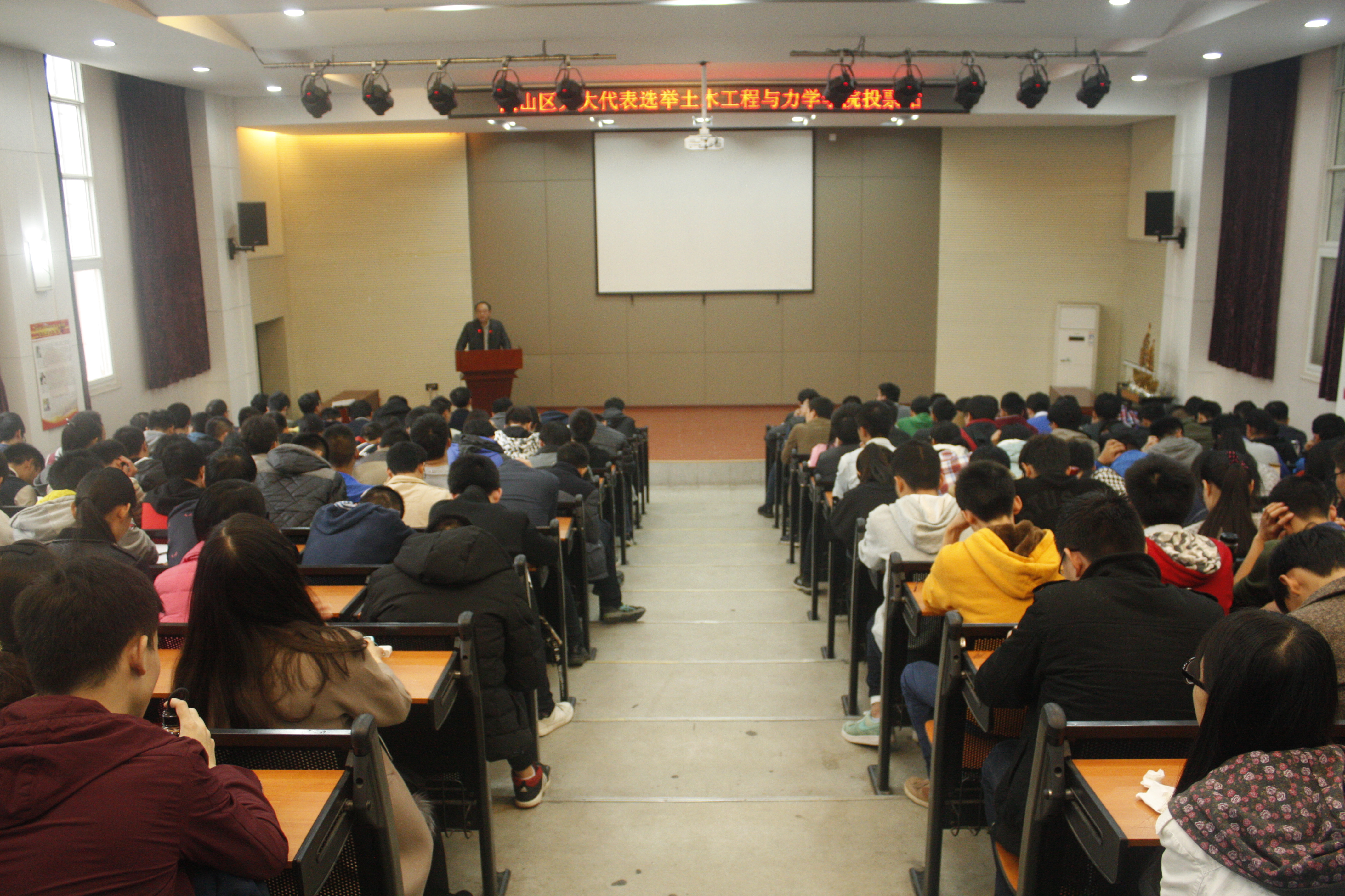 (通讯员:张翼鹏)2016年11月15日 13:00,洪山区人大代表选举土木工程与力学公司投票动员大会于南二楼报告厅隆重召开,公司党委书记李斌老师出席会议,党委副书记毛勇杰老师主持本次会议,公司全体辅导员、全院班长和全体本科生党员参加了会议。
