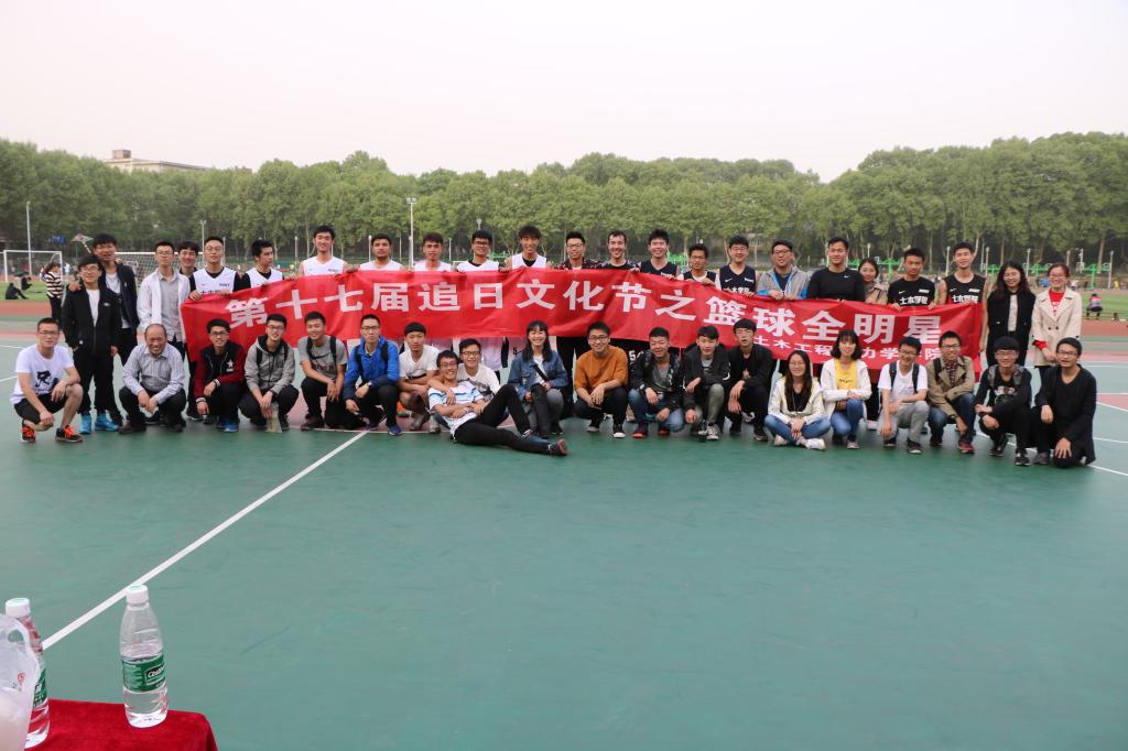 全明星篮球对决是追日文化节的压轴大戏。前期通过线上投票线下选拔组成的黑白两队为观众呈现了人气极高、对抗激烈的体育盛宴。风驰电掣的快攻,诡秘精准的传球,幽默风趣的解说将文化节开幕式推上了高潮。经过40分钟鏖战,黑队以三分优势逆转取胜。第十七届追日文化节开幕式圆满结束。