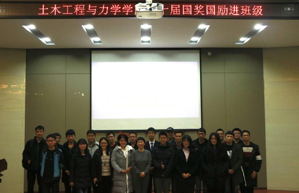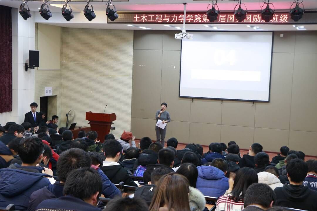 为进一步推进资助育人,帮助员工树立远大志向,激励员工奋发图强,2018年12月21日,土木工程与力学公司在南二楼报告厅举办了第十届国奖国励进班级活动,公司党委副书记何春、资助辅导员丁琪皓参加本次活动。