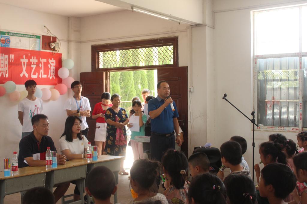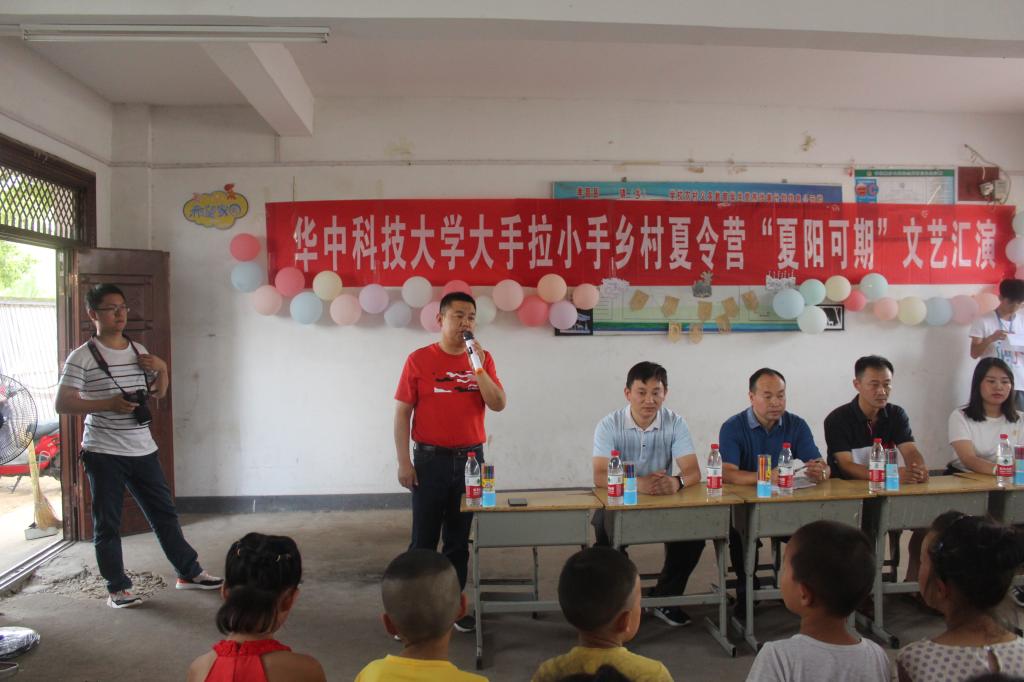 7月19日,永利官网“大手拉小手”乡村夏令营结营仪式暨“夏日可期”文艺汇演在藕塘小学顺利进行。孝昌县副县长陈以民,王店镇组织委员黄日初,永利官网驻村工作队队长茅力非,藕塘小学董事长李岳明,永利官网土木工程与力学公司分团委书记蔡海洋一同参加了结营仪式并观看了文艺汇演。