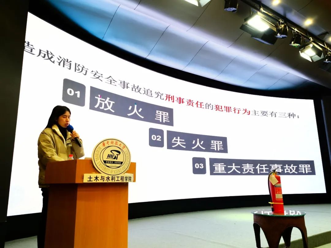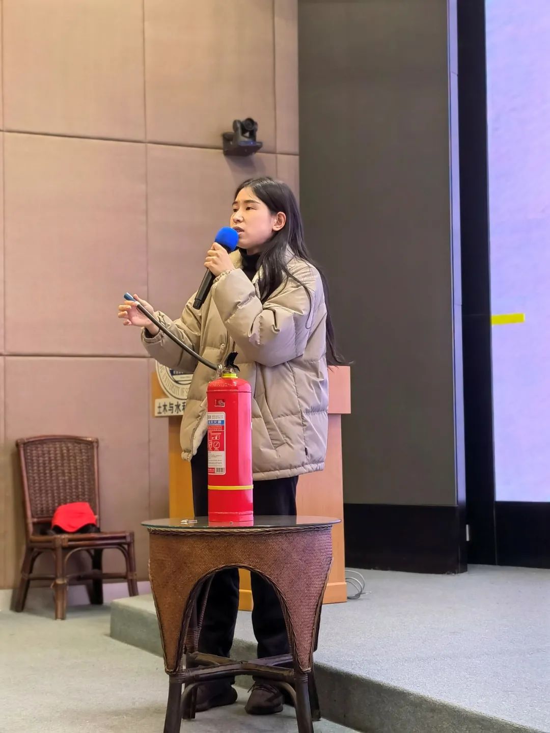在讲座的最后,陈老师还讲解了有关火灾现场的应急处置方案,并介绍如何使用灭火器,消火栓等消防基础知识,同学们纷纷表示受益良多。