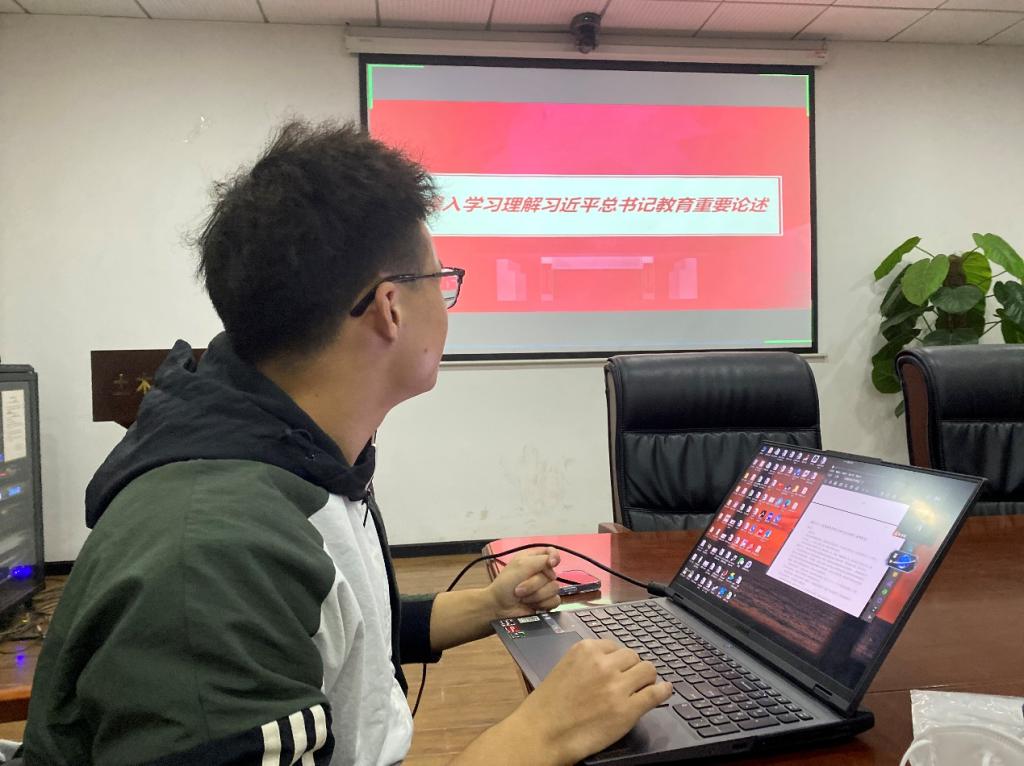 会议第一项,李昂同志带领支部成员学习习近平总书记教育重要论述。李昂同志带领大家分别从战略视野、内容体系和重大意义三方面深入学习,为大家讲解了“为谁培养人、培养什么人以及怎样培养人”等问题。