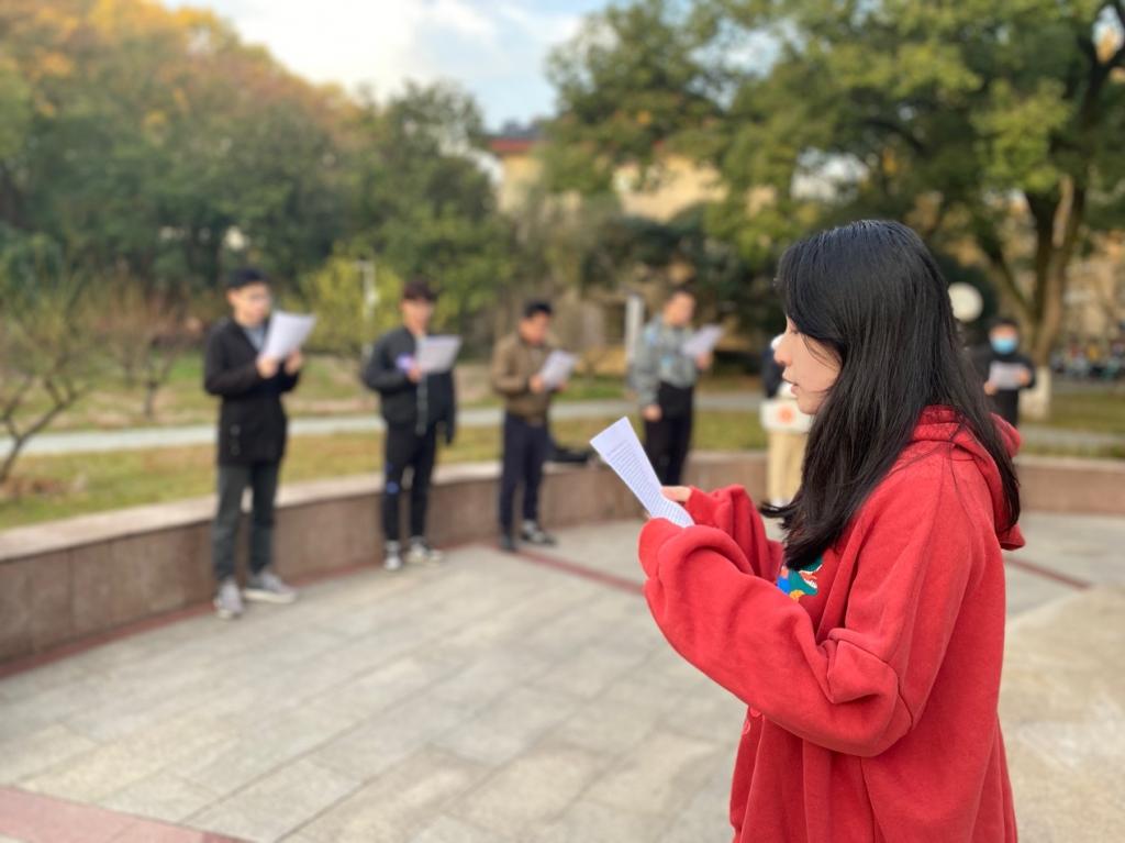 学习开始,领读员李宁静带领大家朗读《中国共产党第十九届中央委员会第六次全体会议公报》节选内容,通过朗读公报内容,同学们更加明白要深入学习党史知识,将先辈们的开拓创新、不畏艰险、全心全意为国家为人民奉献的精神传承下去,并在党的领导下,将这种精神转换为建设新的百年的奋斗力量。