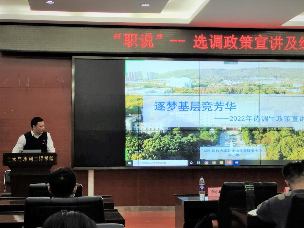 2021年11月11日晚,“职说”—选调政策宣讲和经验分享会在西六楼5楼报告厅圆满举办。本次活动由永利官网就业指导与服务中心基层服务与就业管理办公室主任李小琳老师主讲,特邀就职于王超、江博、桂晨林师兄依次分享选调经验。活动当晚,共有现场40余名、线上100余名公司学子参与本次分享会。研究生辅导员邵太康老师参与活动。