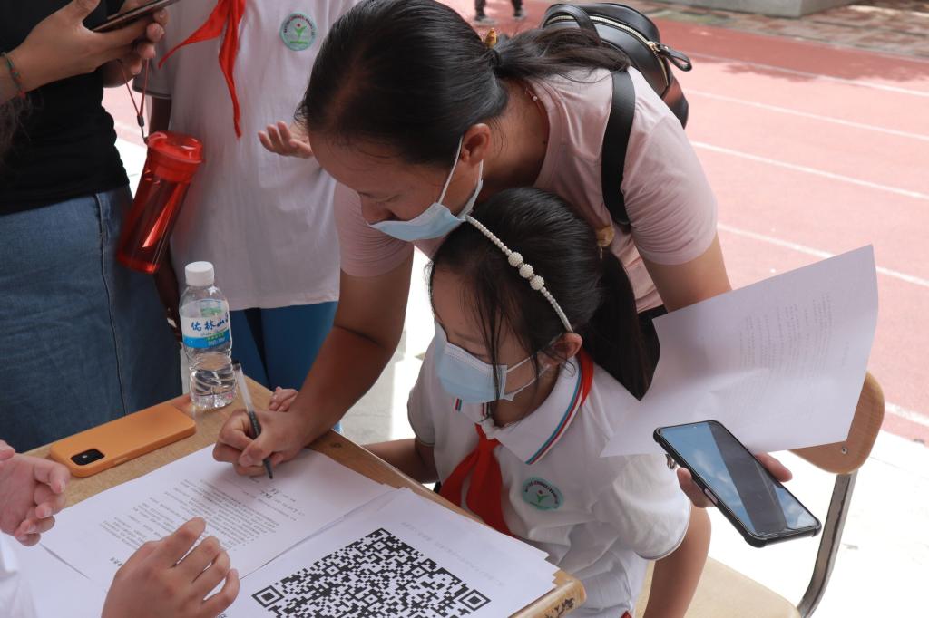 下午两点半,招生仪式正式开始,为了保证安全性、符合防疫要求,实践队要求员工携带两码和核酸检测证明,以及签署安全协议书。所有孩子和家长们于教室入座后,实践队队长徐显显在家长会上指出:“除了兴趣和科普课外,今年,我们团队结合华中大70周年校庆和喜迎20大的主题,开展了一系列别开生面的思政教育类课程和活动日。”夏令营招生结束后,实践队送别员工,在晚上进行会议总结和课程安排,为接下来的夏令营活动做出充分准备。