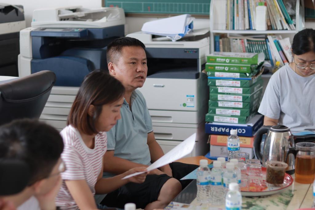 7日早晨,实践队和蚂蚁堆中心完小的董泽军董事长和老师们进行了招生工作的交流和对接。董董事长在对接会上提出了三点要求,其一,夏令营的每项工作一定要细致留痕,表格均要两方各持一份存档;其二,安全放在第一位,尤其注重疫情防控、防溺水教育与往返公司安全;其三,蚂蚁堆中心完小已形成了自己的少先队文化,在夏令营过程中要筑牢文化之基,凝聚精神力量。随后,蚂蚁堆完小的少先队辅导员俸云清带领实践队参观了公司美术室、教师、食堂等地点。队员纷纷表示,“在华中大的帮助下,蚂蚁堆中心完小的员工真的给我们展现出德智体美劳全面发展的态势,很期待见到这群新时代下的孩子。”