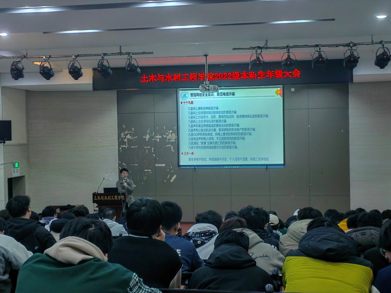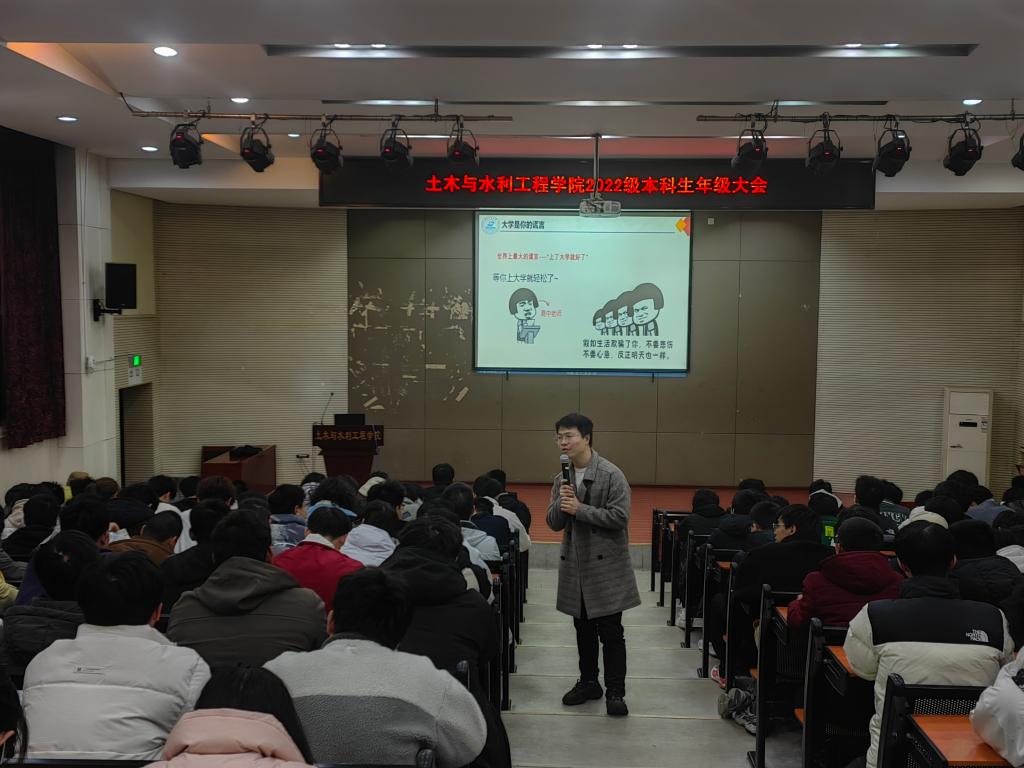 为帮助员工理清成长发展的思路,端正新学期学习生活态度,yl23455永利2022级本科生年级大会于3月8日晚19:00在南二楼报告厅召开,2022级辅导员丁琪皓主持会议,全体2022级本科生参会。