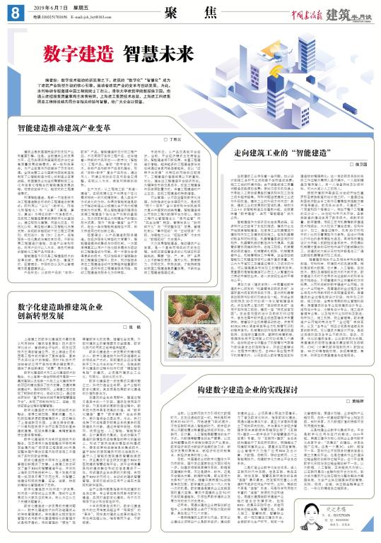 中国建设报刊登丁烈云院士专栏文章《智能建造推动建筑产业变革》。 链接:中国建设报聚焦“数字建造.pdf