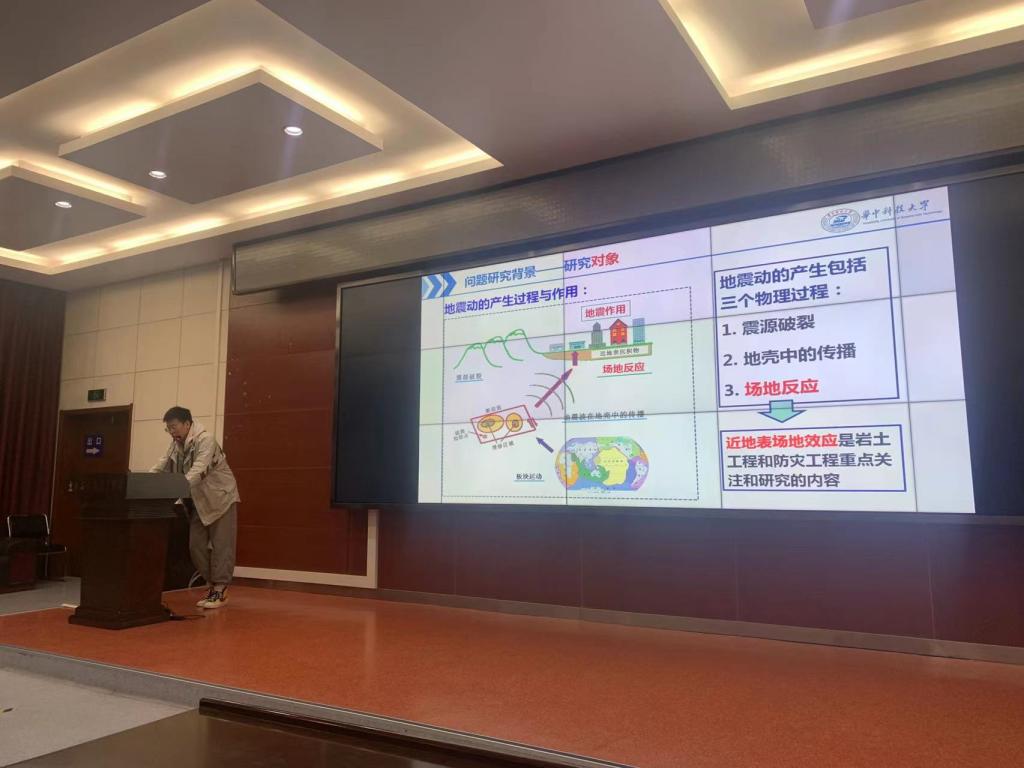 图3.硕士生吉瀚文讲解现有几种地震动入射波分离方法