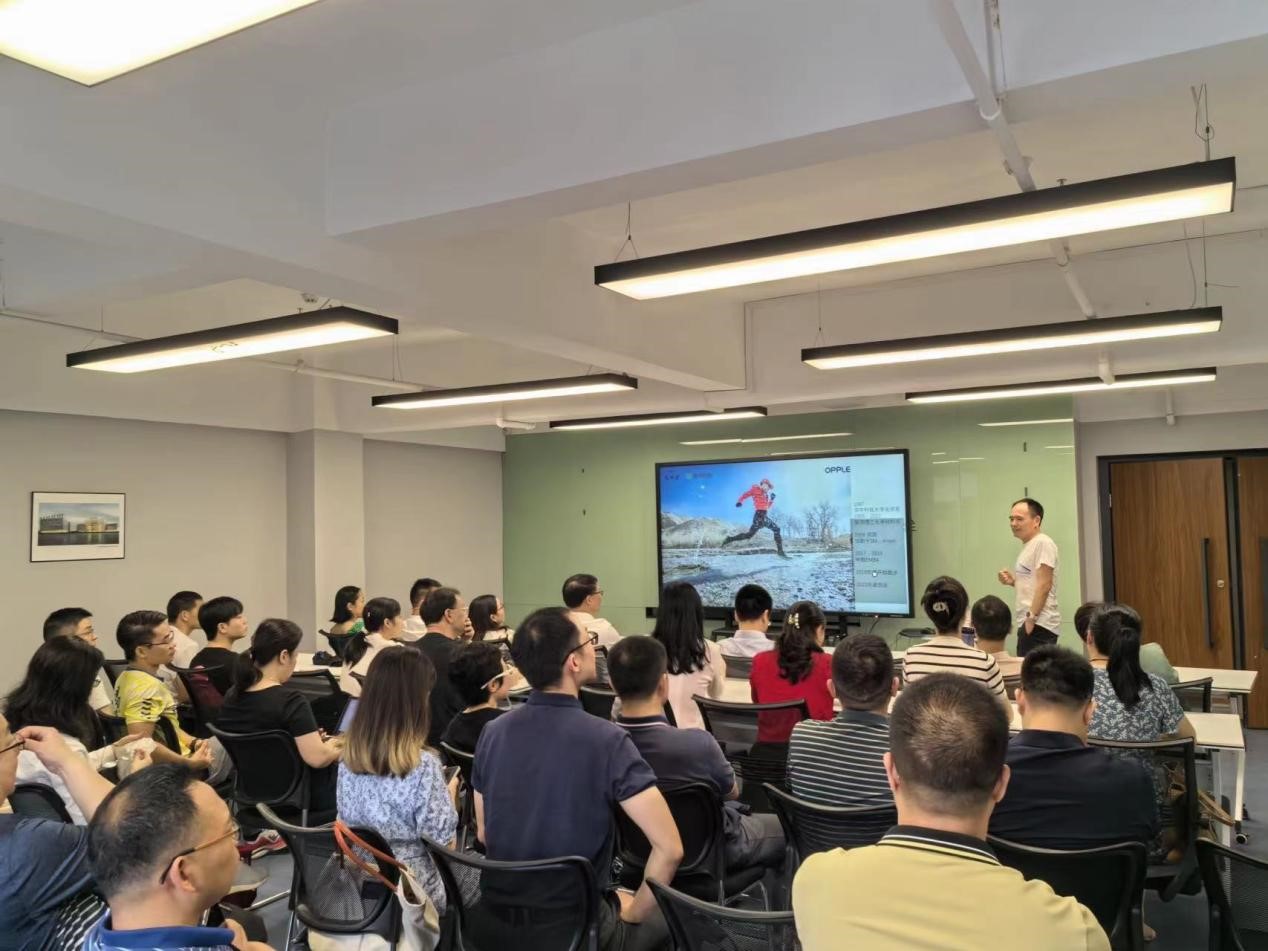 本次读书会特别邀请了医疗行业的华科97级员工周华作为导读师。周华本人在2022年上海市马拉松中取得了2小时43分的优异成绩。60多位员工齐聚一堂,共同阅读马拉松爱好者必读的经典书目《耐力》,从健康、工作、生活、运动、睡眠到营养等多个方面进行了深入探讨。