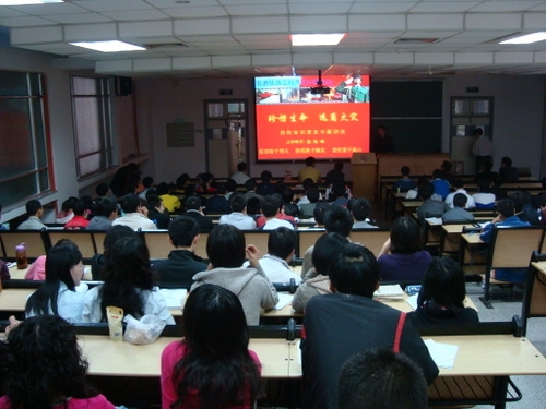 紧接着,主讲人熊教官详细地向大家传授了与火灾相关的各种知识,并强调对火灾一定要做到“预防为主,防消结合”。熊教官向师生们介绍了各类火灾的起因,并针对性地教授了相关注意事项。对于用电器,他强调一定要及时关好用电器的开关,出门之前一定要拔掉插头,这样才能保证自己的生命财产安全;对于煤气,要重点注意煤气泄露、煤气起火、煤气爆炸等,遇到这些情况的时候一定要冷静,进行正确的操作,杜绝不正规的操作。同时,他也着重强调了火灾中的自救常识,并分别就不同情况下的自救逃生技巧进行了说明。熊教官说,火灾发生的过程一般分为四个阶段,即初期、发展、猛烈和熄灭。火灾发生初期的最佳应对措施是灭火,灭火的最佳设施是灭火器。于是,熊教官就为师生们介绍了灭火器的分类及适用范围,并教导大家如何正确使用灭火器。但当进入火灾发展阶段后,唯一能考虑的事情就是逃生。逃生时最关键的就是要注意冷静,冷静才能正确判断逃生的方法、方向以及逃生所使用的工具,逃生中最需要注意的是防止有毒气体的吸入,为此熊教官现场演示了如何正确使用防毒面具。
