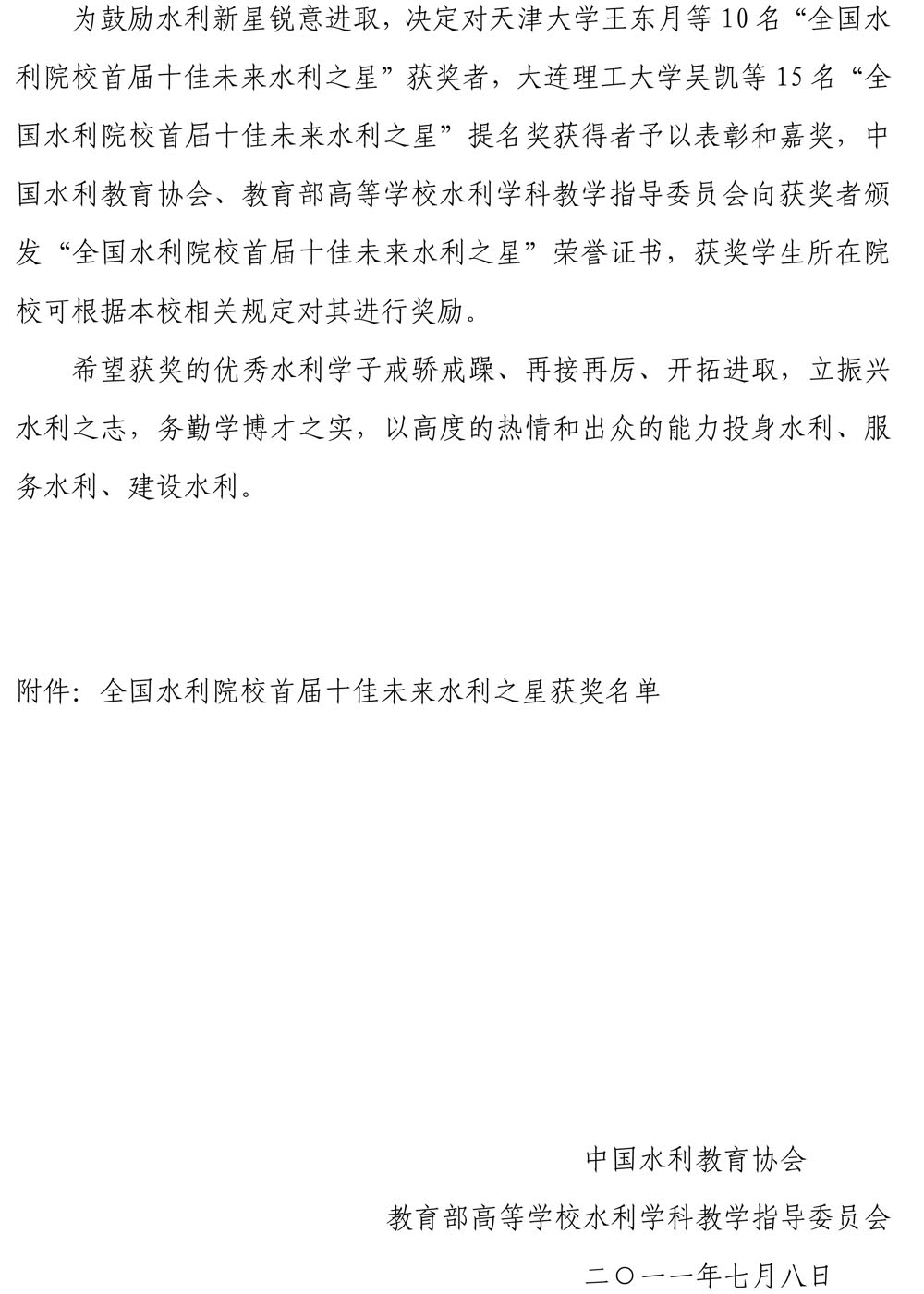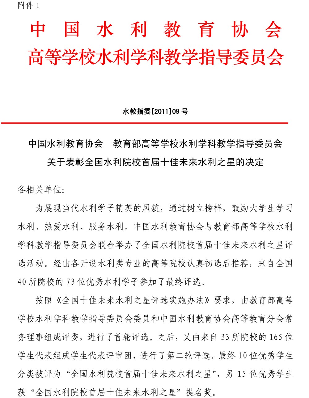 热烈祝贺公司刘俊威同学获全国水利院校首届“十佳未来水利之星”称号
