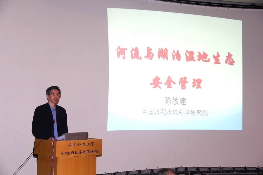 2016年4月1日,中国水利水电科学研究院副总工程师、我国著名生态水文专家陈敏建教授应邀来公司讲学,作为水电公司“科技前沿与科学家学术思想”讲坛2016年第二期讲座主讲嘉宾,在水电能源仿真中心投影厅做了题为“河流与湖泊湿地生态安全管理”的学术报告。讲座由水电公司经理周建中教授主持,公司党总支负责人杨海斌副书记和公司师生参加了本次活动。