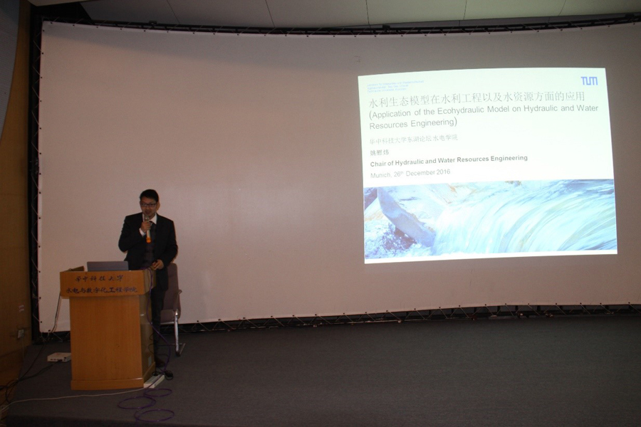 赵铜铁钢博士来自澳大利亚联邦科学工业组织(Commonwealth Scientific and Industrial ResearchOrganization,CSIRO),结合工程实践从集合预报模型构建、结果检验及调度应用等方面展开,深入探讨了量化决策不确定性的调度决策分解方法,报告了基于滑动余留库容的水库调度等研究成果;姚慰炜博士来自德国慕尼黑工业大学水利生态所,以“水利生态模型在水利水电工程以及水资源方面的应用”为题,重点介绍了考虑水动力、河床泥沙运移、河流栖息地和鱼类种群数量的水生态模型建模计算与比较,并对人工投放鱼类的影响进行了分析;香港城市大学王龙博士阐述了基于数据驱动和图像辨识的风电机组状态故障识别和状态监测方法等研究成果。