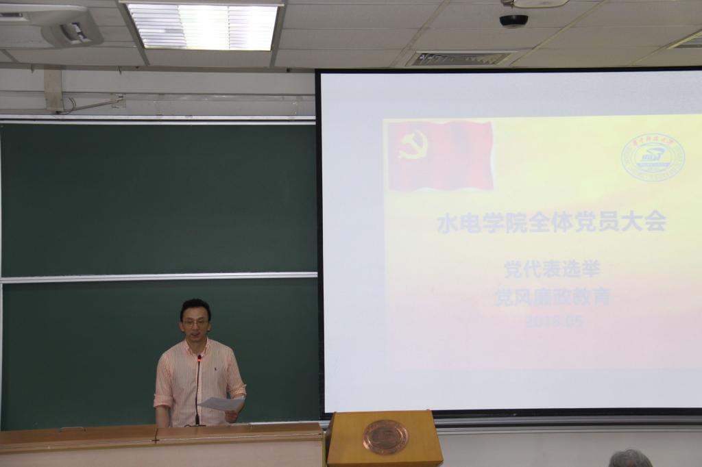 2018年5月29日下午1:40,水电公司党委组织全体师生党员在西十二教学楼N212教室开展选举党代表工作公司党委书记杨海斌主持此次会议。146名正式党员、31名预备党员与会。到会有选举权正式党员人数超过应到会人数的4/5。大会的主要任务是选举出席中国共产党永利官网第四次代表大会党员代表。