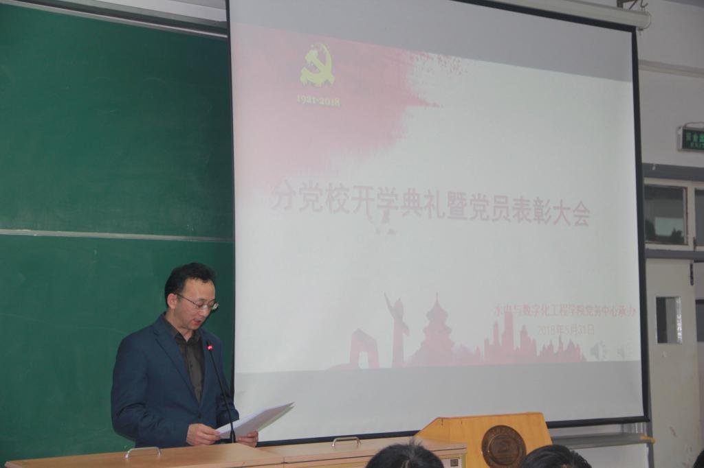 2018年5月31日晚19点公司2017年分党校开学典礼暨优秀党员表彰大会于西十二教学楼N112教室成功举行。水电公司党委书记杨海斌、水电公司研究生辅导员张誉千老师出席此次开学典礼,党建辅导员张建主持活动。参加此次党校开学典礼的还有水电公司各支部书记,党员,预备党员,发展对象和入党积极分子。