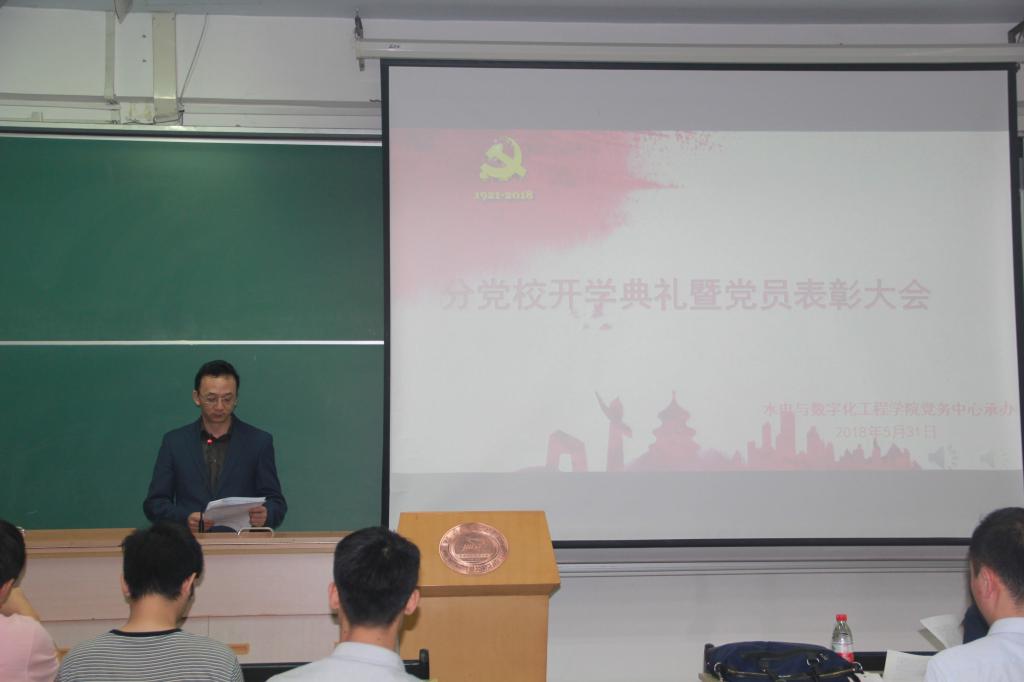2018年5月31日晚19点,公司党委书记杨海斌在2018年水电公司分党校开学典礼暨优秀党员表彰大会上给员工上了一堂以“不忘初心跟党走,苦练内功树形象”为专题的思政课。党建辅导员张建老师、研究生辅导员张誉千老师、公司全体党员,预备党员,发展对象和入党积极分子参加了本次思政课。