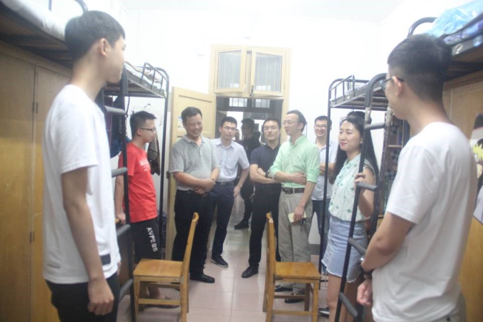 在此之前,水电公司领导于9月1日晚8:00走访了本科生新生宿舍。公司党委书记杨海斌、党委副书记谢倩、副经理徐学军、经理助理李超顺、教师班主任郭文成、许颜贺以及2018级本科辅导员齐小静参与了此次走访,深入寝室了解新生们的情况,询问他们的成长诉求,并送去温暖的问候和深切的期盼。