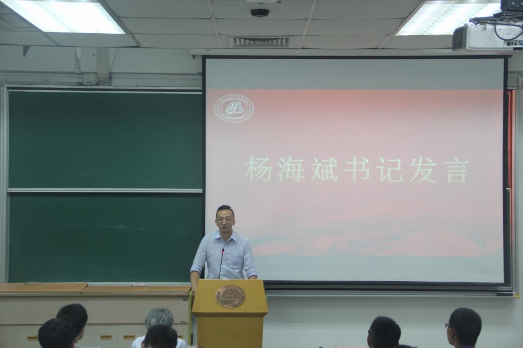 杨海斌书记对新生寄予了殷切的希望:一要追求卓越,尊师肯学;二要明确目标,要会学习;三要崇德修身,严于律己。杨书记在讲话中分享了两个故事,分别是纪广洋的《一分钟》和《故事时代》中的《差别》,他希望同学们能够珍惜分秒,细致全面。