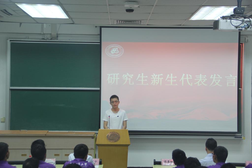 新生代表研究生李力和本科生林炜添分别发言表达了自己的信心和决心,他们表示会努力珍惜在大学的时光,争取在毕业的时候取得较大的进步和优秀的成果。