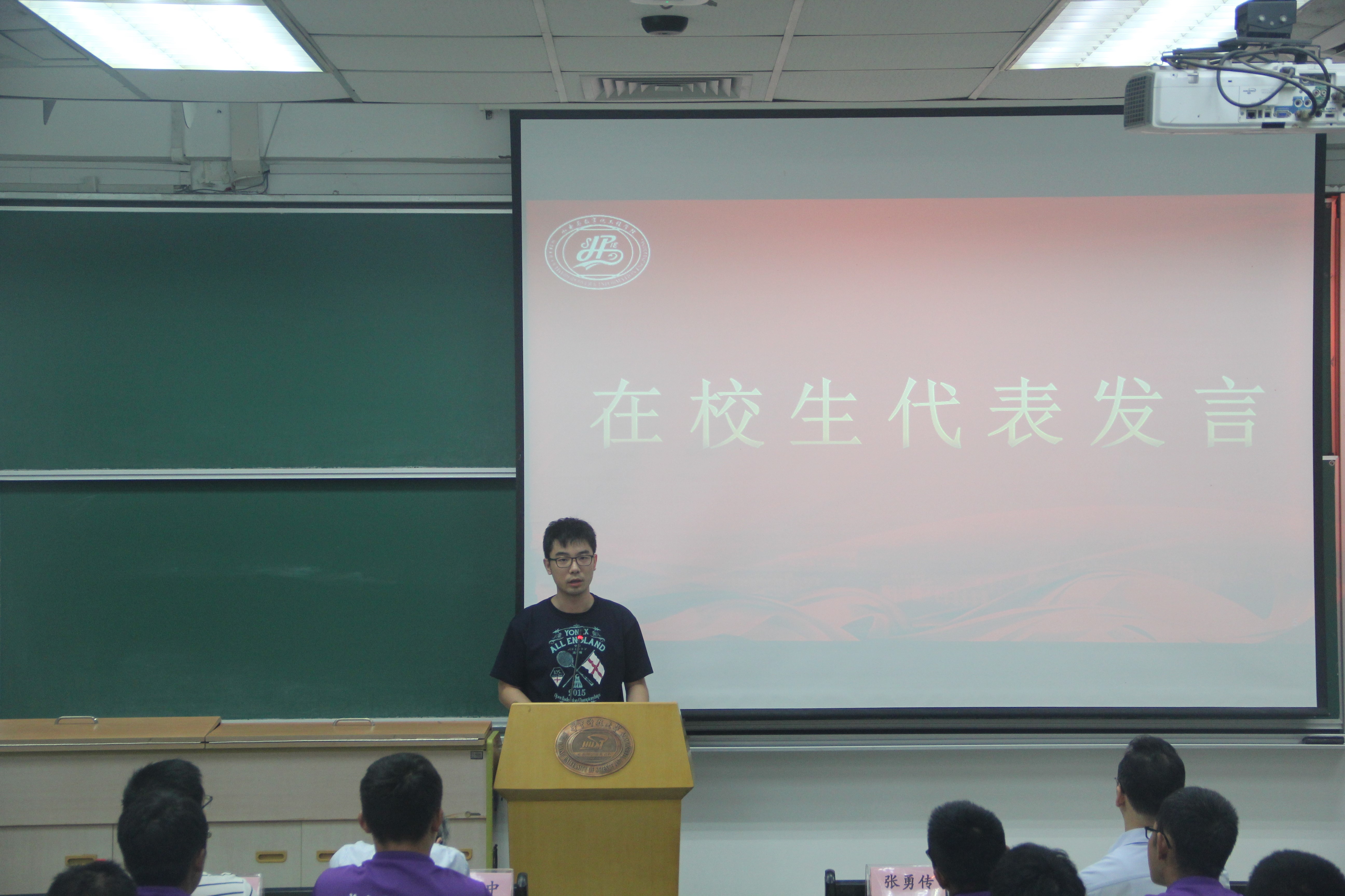 水电公司14级博士卢程伟作为在校生代表也为新入学的学弟学妹们提了一些建议,分享了他在学术科研方面的心得,并告诫师弟师妹们要能够把握好珍贵而短暂的大学时光,不要虚度光阴。