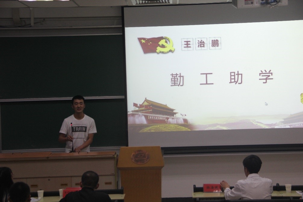 罗玙、董伟杰、张毅和王治鹏分别从不同的角度分享了自己的经历。罗玙在各种志愿服务中获得了幸福感。她说优秀可以有很多种,选择自己喜欢做的事情,并坚持做下去就是一种优秀。每个人都不要妄自菲薄,每个人都有自己的优秀。董伟杰讲述了自己从入大学一步步走到现在并获得阶段性的成功离不开张腾、孙宏博以及董蛟龙三位党员的帮助和指引,正式因为他们的帮助,让他成长,让他找到了自己所热爱的。张毅分享了自己参加青马工程以及做员工工作的经历,通过自己在进行工作时的心路历程,告诫同学们不要轻言放弃,坚持总会有收获。通过下基层的经历,体会到了老一辈党员同志们的艰辛。王治鹏分享了自己勤工俭学的经历,通过自己做协管员到主管的两年间,用自己的努力支付自己的生活费,并结识了一群优秀的伙伴,是我们老员工自立自强的榜样。