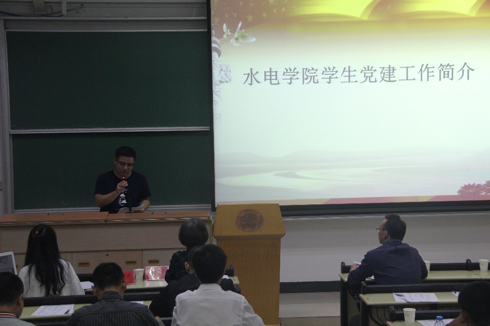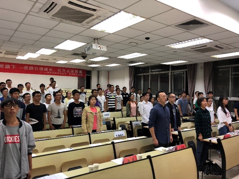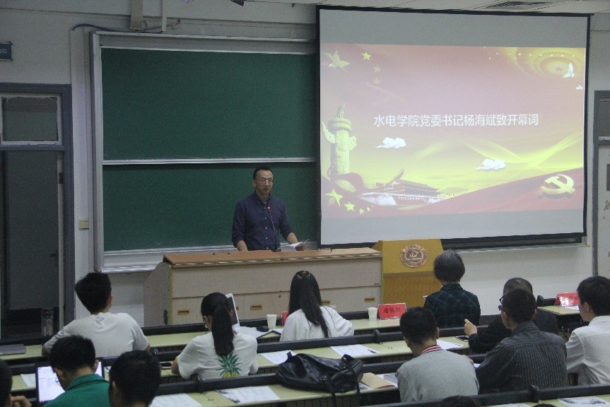 为了培养和壮大党建队伍,培养同学的服务意识和进取精神,水电与数字化工程公司于2018年9月26日在西十二教学楼N212教室举办了以“党旗引领成长,红色点亮青春”为主题的本科生党建宣讲会,与会人员为全体本科生党员、部分入党积极分子和发展对象、以及17、18级全体本科生。。公司党委书记杨海斌、校组织部派兼职组织员唐燕红书记以及党建辅导员张建参加本次活动,本科生党支部支委常新雨同学主持本次大会。