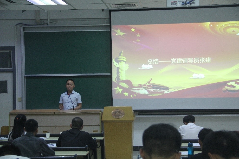 最后由党建辅导员张建进行总结,他提出两个问题,一是为什么入党,他希望每一位同学都能怀着正确的为人民服务的目标加入党组织。二是并不是只有优秀的人才能入党,那些优秀的同志正是因为有了党的引导,一步一步地成长,从而变得更加优秀。