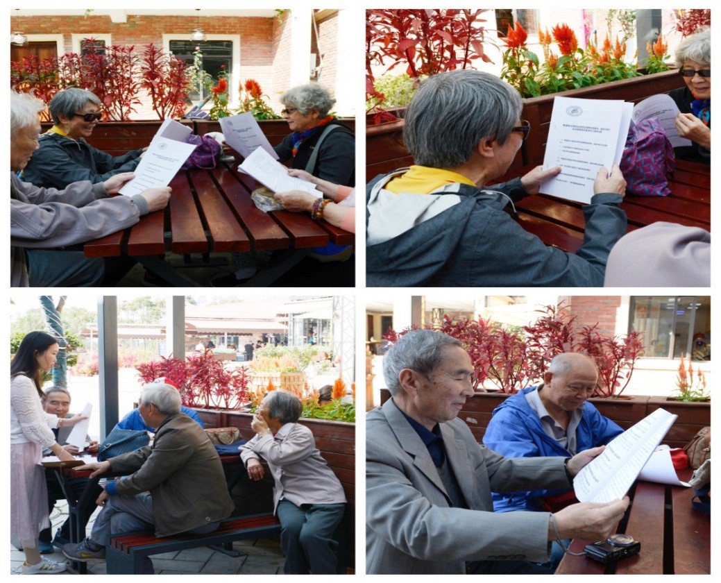 老同志们兴致勃勃地欣赏着园中美景,在一起聊家常,关心彼此的健康,互致问候和祝福,拍照留念,其乐融融,相聚甚欢,甚至打电话将组织对他们身心健康的深切关怀告诉远方的儿女。